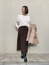 ■ダウンコート 着用サイズ 9号 【サイズ感】 ・ゆったり着られますがオーバー過ぎず、私の体型だと重ね着してもちょうど良いサイズ感です。 ・袖丈が長めで、指先が少し出るくらいの長さがあります。 ■裏起毛2WAYストレッチスカート 着用サイズ9号 【サイズ感】 ・全体的にタイトですがウエストが後ろゴム仕様で楽な着心地です。 ・着丈長めですが、後ろスリットで動きやすいです。 【素材感・着心地】 ・暖かい裏起毛素材です。 ・適度な伸縮性があり、柔らかい素材で窮屈感が無いです。 ・裏地無しなので着用の際はお持ちのペチコートの使用がおすすめです。