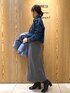 ○ダウン 着用サイズ9号 【サイズ感】 中に重ね着ができるくらいゆとりがあります。 ドロストでウエストを絞るとよりすっきりして見えます。 【素材感・着心地】 タフタ素材ならではのハリと程よいツヤがあり、とても軽い着心地です。 ○デニムシャツ 着用サイズF号 【サイズ感】 コンパクトなシルエットで丈感は短めです。 【素材感・着心地】 ヴィンテージな風合いがあり、柔らかい生地感と軽い着心地です。 ○タートルカットソー 着用サイズ9号 【サイズ感】 ぴったりしすぎず、1枚でもお召しいただきやすいです。 【素材感・着心地】 起毛感のある柔らかい素材で着心地が良いです。 ○タイトスカート 着用サイズ9号 【サイズ感】 フィット感はありますが、後ろがフレアシルエットなのでタイトスカートでも挑戦しやすいです。 【素材感・着心地】 起毛した肉感のある生地なので体のラインを拾いすぎず、冬も暖かくお召しいただけます。