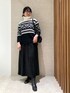 ◼︎ニット 着用サイズ9号 【サイズ感】 ・ざっくりしたサイズ感ですが、コートの中に着てもあまりごわつかない着心地です。 ・身長162cmでヒップにかかる長さです。 サイドにはスリットがありレイヤードも楽しめます。 【素材感・着心地】 ・チクチク感じにくく、暖かいニットです。 ・スヌードを外して首元の雰囲気の変化を楽しむことができます。 ◼︎スカート 着用サイズ9号 【サイズ感】 ・ウエストがゴムで、楽な履き心地です。 ・腰の張りが気になりにくく、裏地の突っ張りもなく落ち感が出ます。 【素材感・着心地】 ・リアルスエードのような、艶やかでとろみのある生地です。
