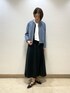 ◯ブルゾン 着用サイズ9号 【サイズ感】 ・中にジレを重ねても身頃にゆとりがあります。 ・袖丈は手の甲にかかるくらい、着丈はウエストラインぐらいです。 【素材感・着心地】 ・合成皮革のスウェード調の生地です。 ・とても柔らかく軽い着心地です。 ◯ジレ 着用サイズ9号 【サイズ感】 ・身幅は程よいゆとりで、スッキリ見えするなと感じました。 ・アームホールは広めです。 ・167㎝でブルゾンから出ない着丈です。 【素材感・着心地】 ・前後2WAYで着れます。 ・3D刺繍テープの生地で立体感があります。 ◯ブラウス 着用サイズ9号 【サイズ感】 ・身頃、袖周りはたっぷりめです。 ・首はすっきり空いていて、167㎝でヒップにかかる着丈です。 【素材感・着心地】 ・ほんのり光沢感があります。 ・さらっと軽い着心地です。 ◯バルーンスカート 着用サイズ9号 【サイズ感】 ・ウエストは程よいゆとりがあります。 ・パンプスでも足首上の着丈です。 【素材感・着心地】 ・表地が綿の素材です。 ・裏地はポリエステルなので、さらっとした肌触りです。 ◯パンプス Mサイズ 幅が少し細めだと感じました。 甲にベルトがついてるので、安定感があります。