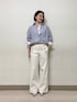 ■ストライプシャツ 着用サイズ F 【サイズ感】 ・身幅、アームが全体的にゆったりしています。 ・着丈長めで身長160センチでヒップがカバーできる丈感です。 【素材感・着心地】 ・適度なハリ感がありますが、オーガニックコットン使用で優しい肌触りです。 ・しっかりした生地感で暖かい季節の羽織りとしても使えます。 ■ロゴ刺繍入り白シャツ 着用サイズ 9号 【サイズ感】 ・アーム、身幅がゆったりしています。 ・着丈は身長160センチでヒップがカバーできる長さです。 長めなのでボトムにインした時に裾が出てきにくいです。 【素材感・着心地】 ・サラッとした柔らかい肌触りで、適度なハリ感とツヤがあり上品な素材感です。 ・生地の軽さとゆったりめのサイズ感がインナーとしても羽織りとしても活躍します。 ◾️リブタンクトップ 着用サイズ F 【サイズ感】 ・ピッタリめのサイズ感です。 ・着丈は短過ぎず、ボトムインした時にも出てきにくい長さです。 【素材感・着心地】 ・薄手で柔らかい生地感です。 ・着用した白は透け感があるのでインナーに注意が必要です。 ■セーラーデニム 着用サイズ9号 【サイズ感】 ・私の体型で9号サイズがウエストに若干ゆとりがあり, 楽に穿けます。 ・着丈は身長160センチで靴をはかない状態でかかとギリギリくらいです。 【素材感・着心地】 ・しっかりとした生地感ですが柔らかく肌触りが良いです。 ・白ですが透け感が気にならず穿けました。