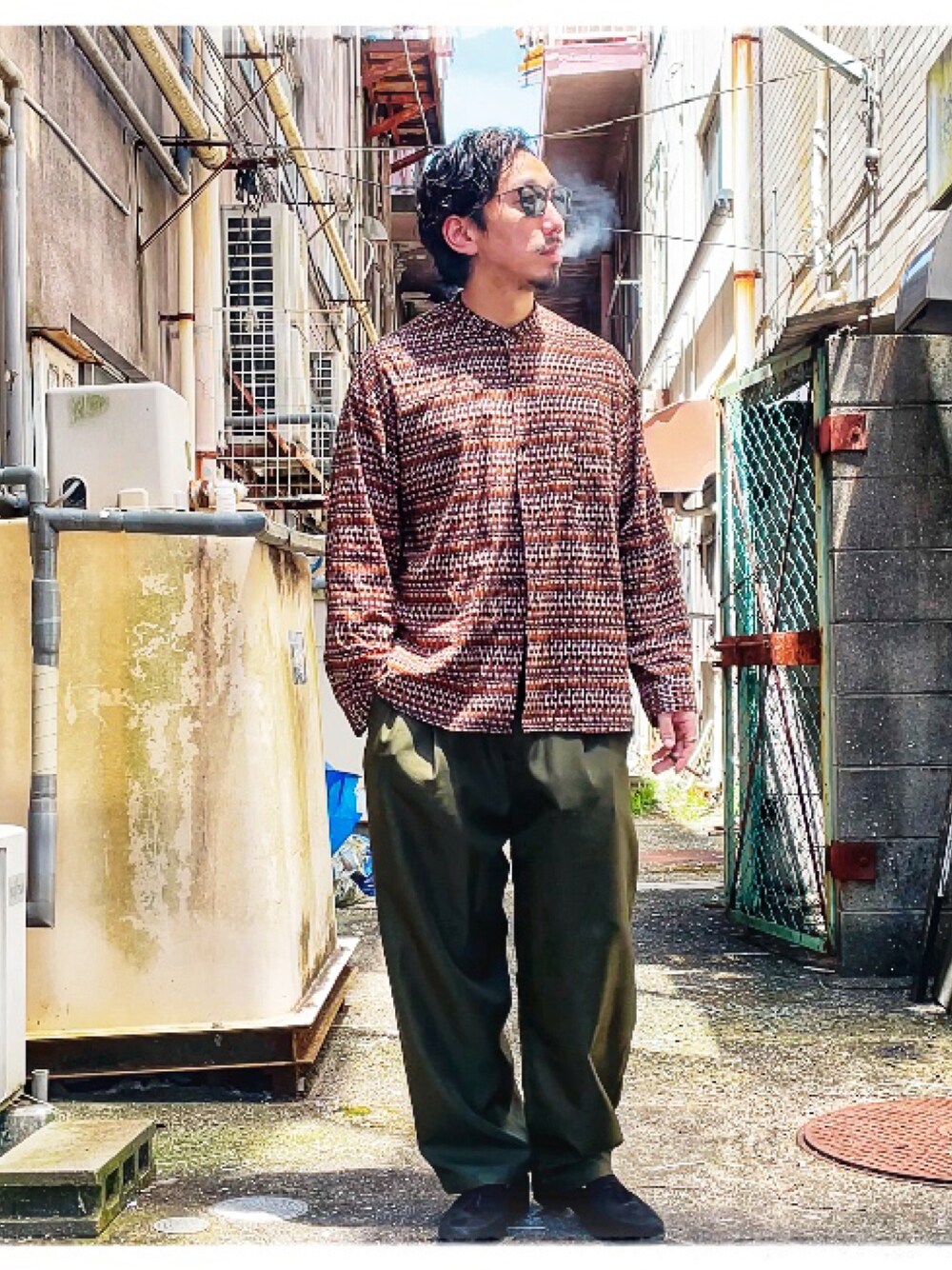 今回のスタイリング。 スタンドカラーシャツになります。 シルエットはゆったりタイプで 長袖ですが、ポリ系のテロっとした生地感ですし、首元スッキリのスタントカラーなので 夏でもオッケーです。 この柄が気に入って購入しました。 何柄なのか分かる方いたらコメントくださいw パンツもカーキカラーのワイドパンツ 。 オーバーサイズコーデで 子供っぽくなりすぎないようにするポイントは 柄や色味を落ち着いたものにすると 適度に大人っぽさがでますよ。 あと靴もわりと細みのものを選ぶほうが スッキリして見えます。 それでは、ご参考にどうぞ。 いいね、コメント、フォローいただけると喜びます😊