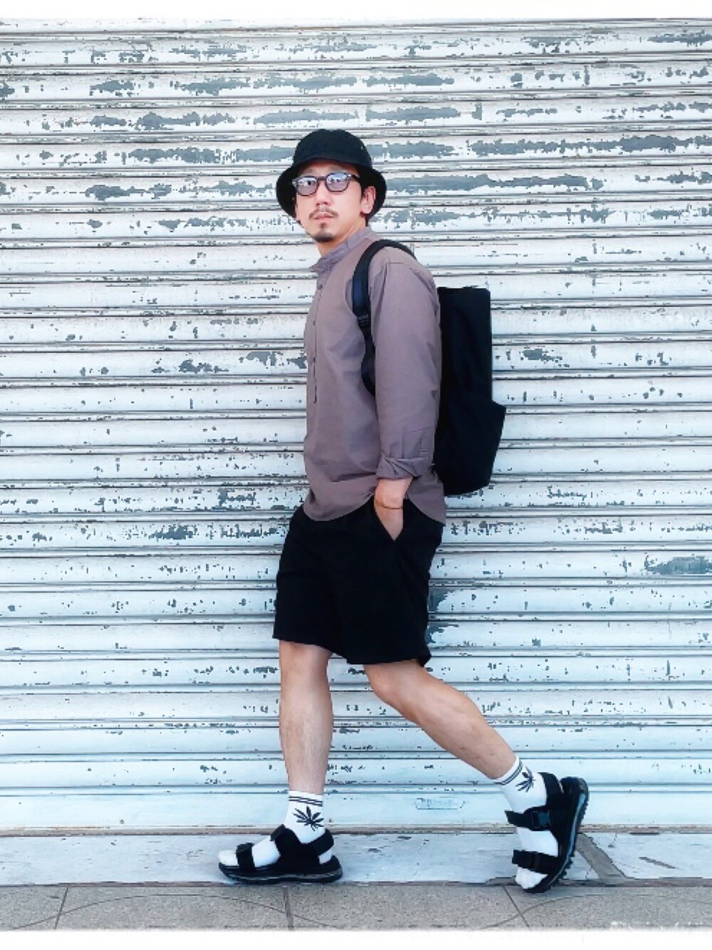 プルオーバータイプの長袖シャツになります。 プルオーバーシャツは久々です。 抜け感が出てほどよく大人っぽさを出してくれます。 スタンドカラーなので首元スッキリ、 春夏に使いやすいアイテムです。 生地感はわりとしっかりめで洗濯も気にせずガンガン洗えますよ。 グレーの色味が気に入ってまして 今回は黒のショーツに合わせてカジュアルスタイル。 バケットハットにサンダルでちょっと若めなコーデになっておりますw サンダルはソックスと合わせて今どき感を出してみましたww それでは、ご参考にどうぞ。 いいね、コメント、フォローいただけると喜びます😊