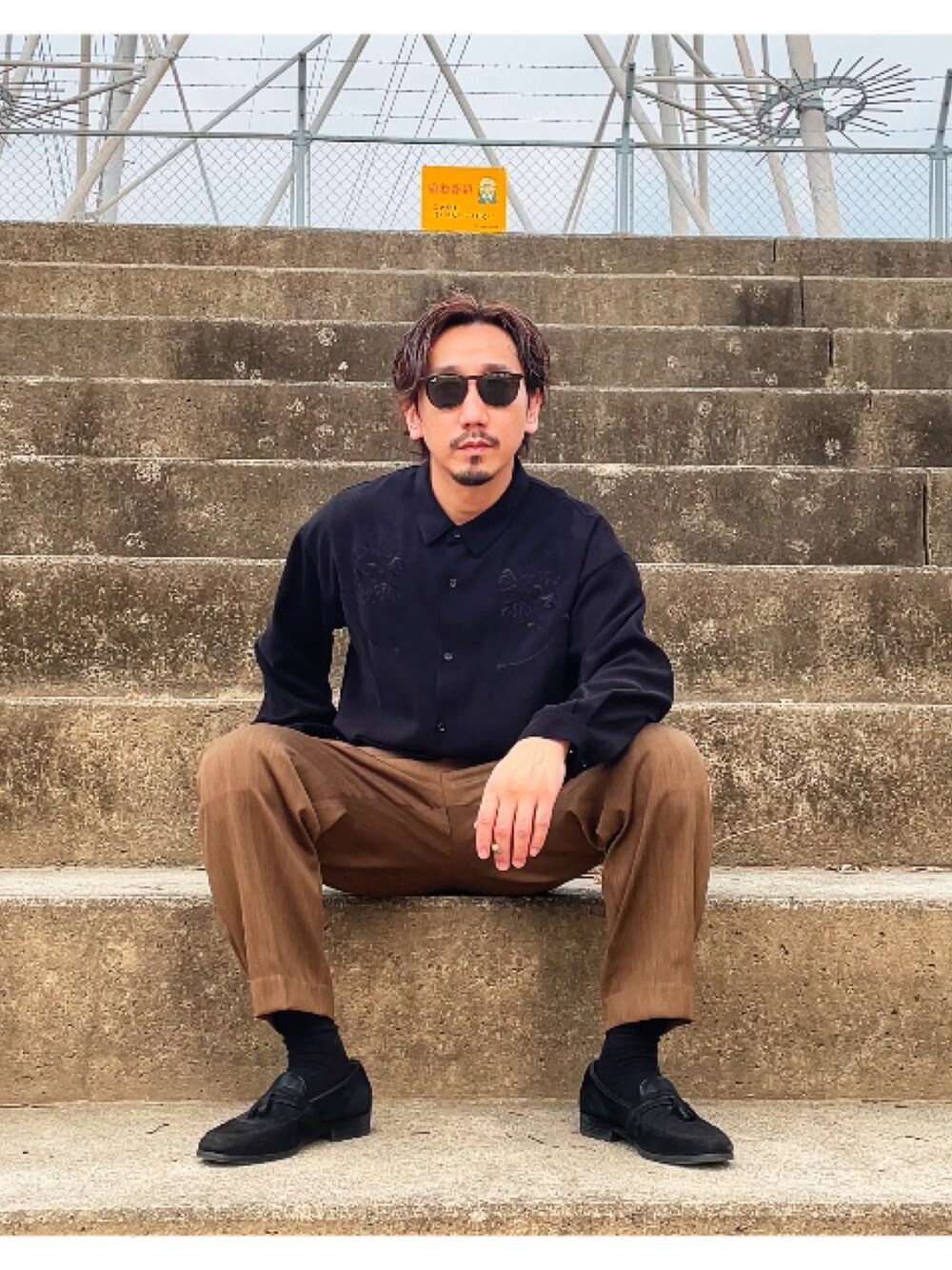 ゆったりシルエットのシャツです。 両胸にはバラっぽい花が刺繍されてます。 刺繍はもちろんですが、 絶妙なシルエットがかなりツボです! 一枚でも映えるしインナーでも黒なのでヘビロテできます。 パンツはカーキカラーのテーパードパンツ。 このパンツもシルエットが好きでこの2アイテムの共演は最高ですね! ぜひ、ご参考にどうぞ。 いいね、コメント、フォローいただけると喜びます😊