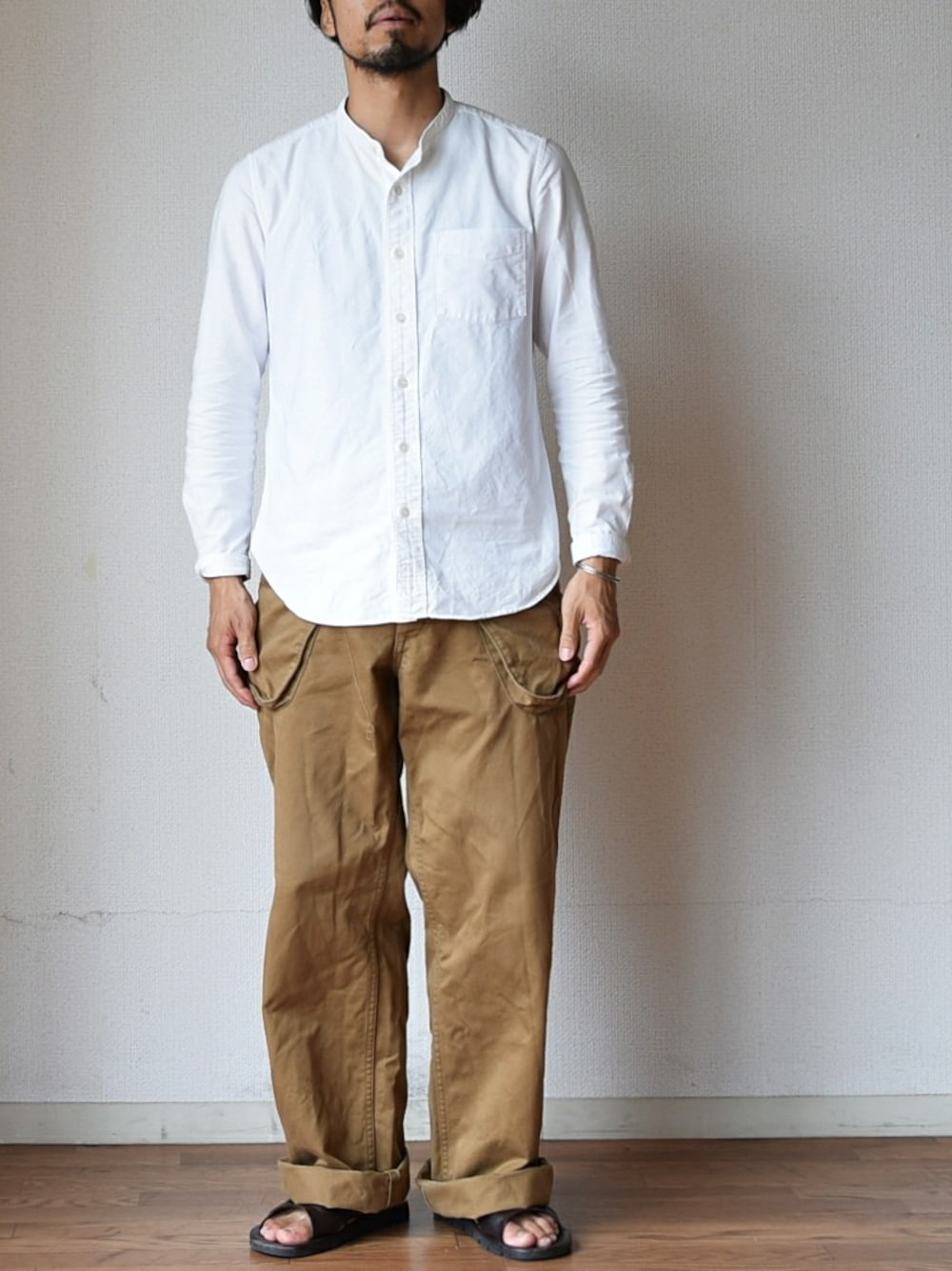 comoda上西猛夫のシャツ/ブラウス「MANUAL ALPHABET マニュアルアルファベット プレミアムオックス バンドカラーシャツ」を使ったコーディネート