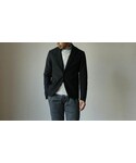 comoda上西猛夫のテーラードジャケット「Manualalphabet マニュアルアルファベット HOPSACK 2B JACKET ホップサック2Bジャケット BLK ブラック MEN′S メンズ」を使ったコーディネート
