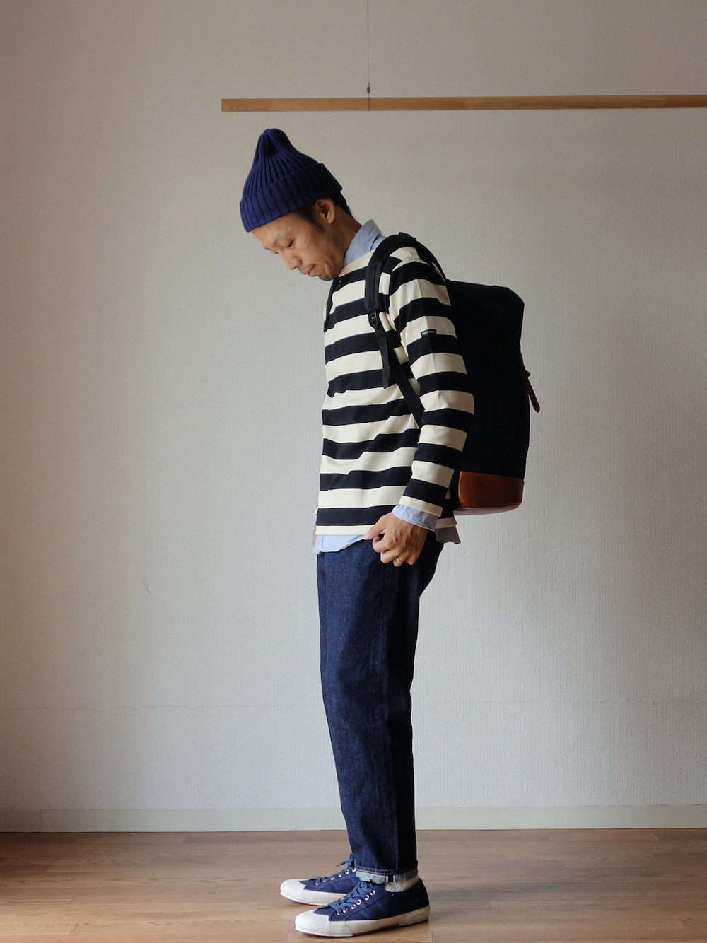 comoda上西猛夫のTシャツ/カットソー「【RECOMMEND】SAINTJAMES セントジェームス OUESSANT ウエッソン WIDE BORDER ワイドボーダー ECRU×MARINE 生成り×マリン【正規取り扱い品】」を使ったコーディネート