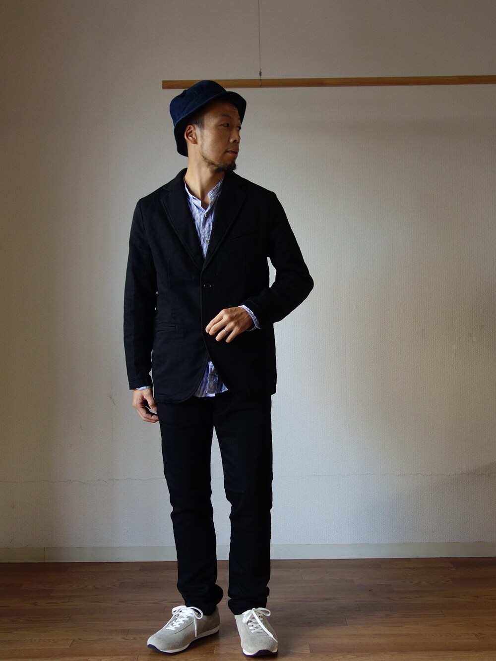 comoda上西猛夫のテーラードジャケット「【2015秋の新作】KAFIKA カフィカ kfk1041 ONE MILE TAILORED JACKET ワンマイルテーラードジャケット BLK ブラック MEN'S メンズ」を使ったコーディネート