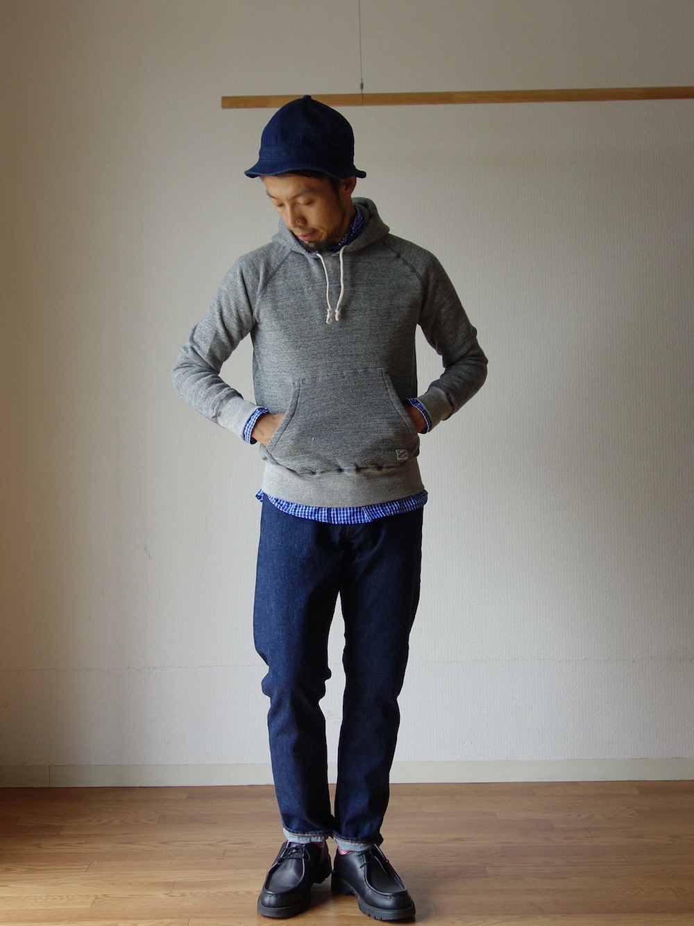 comoda上西猛夫のシャツ/ブラウス「Kepani ケパニ SWEAT PARKER スウェットパーカ "Manchester-2 マンチェスター" GRY グレー」を使ったコーディネート