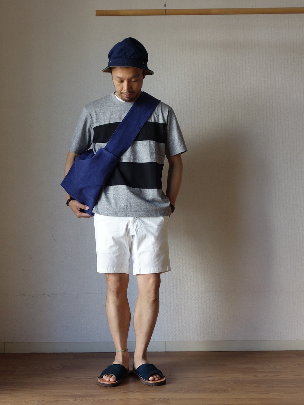 comoda上西猛夫のTシャツ/カットソー「LA MOND ラモンド MESH BORDER TEE メッシュボーダーTEE GRY×BLK グレー×ブラック」を使ったコーディネート