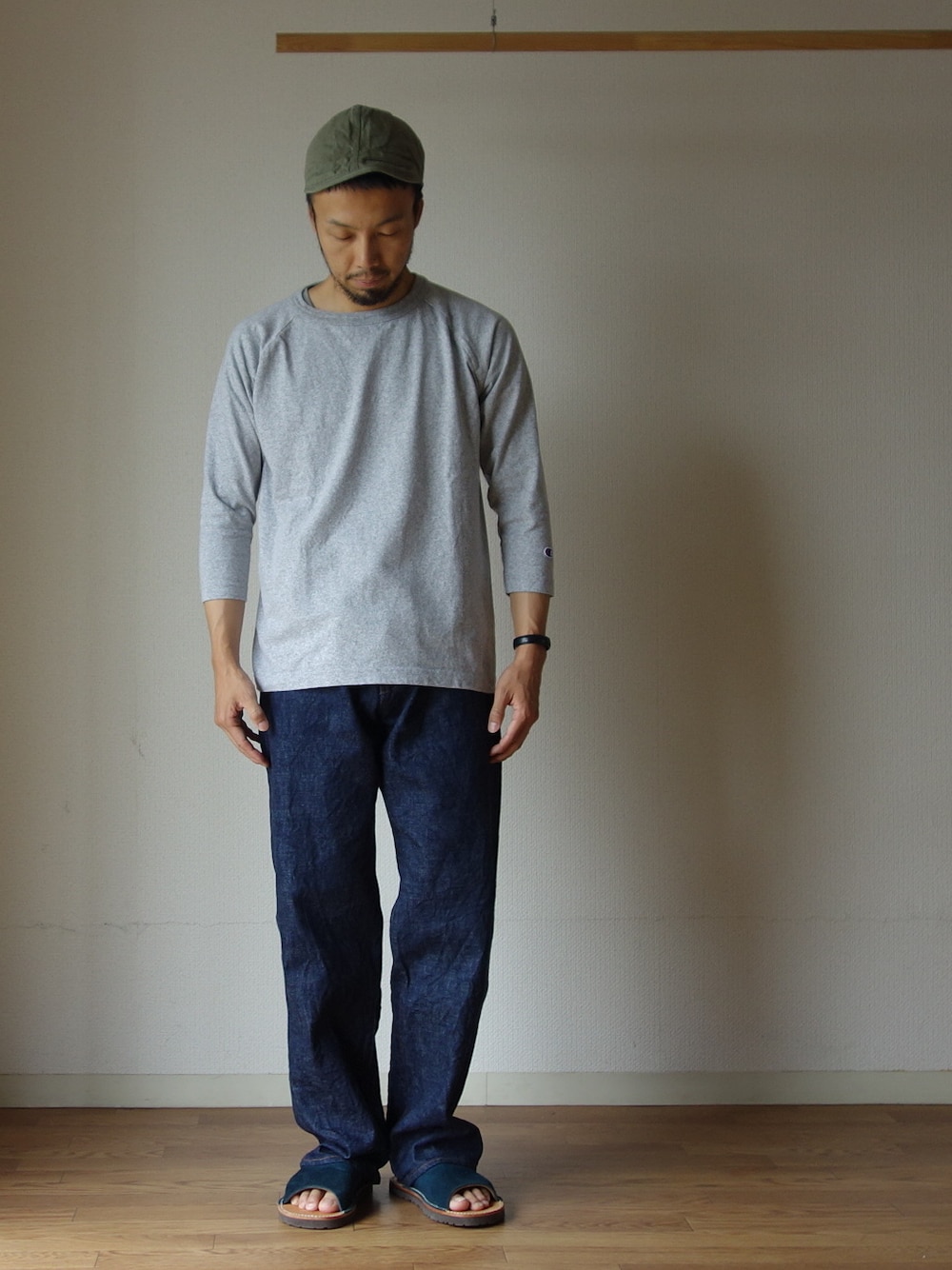 comoda上西猛夫のTシャツ/カットソー「Champion チャンピオン T1011 RAGLAN 3/4 SLEEVE TEE ラグラン 七分袖Tシャツ GRY グレー MADE IN USA アメリカ製」を使ったコーディネート