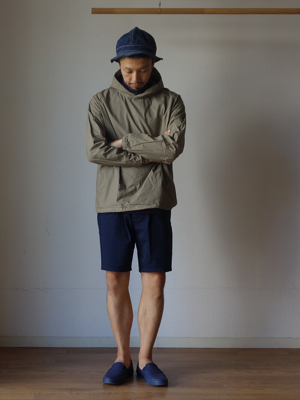 comoda上西猛夫のパーカー「MANUAL ALPHABET マニュアルアルファベット MA-J- 123 TYP SHIRT PARKER タイプライターシャツパーカー MOC モカ」を使ったコーディネート