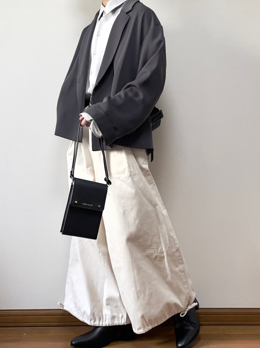ご覧頂きありがとうございます! よろしければいいね、save、フォローお願いします! 今回はキレイカジュアルなモードコーデを組んでみました! シャツタックイン&ジャケットの組み合わせでガッツリキレイめに振り、 パンツの素材感やジャケットのデザイン、タックインで見えるベルトでカジュアル感をプラスして中和しています🙆♂️ そして全体のシルエットやブーツでモードな印象も持たせてます👍 色んな要素が上手く噛み合った、なんやかんやバランスの良いコーデになりました😎