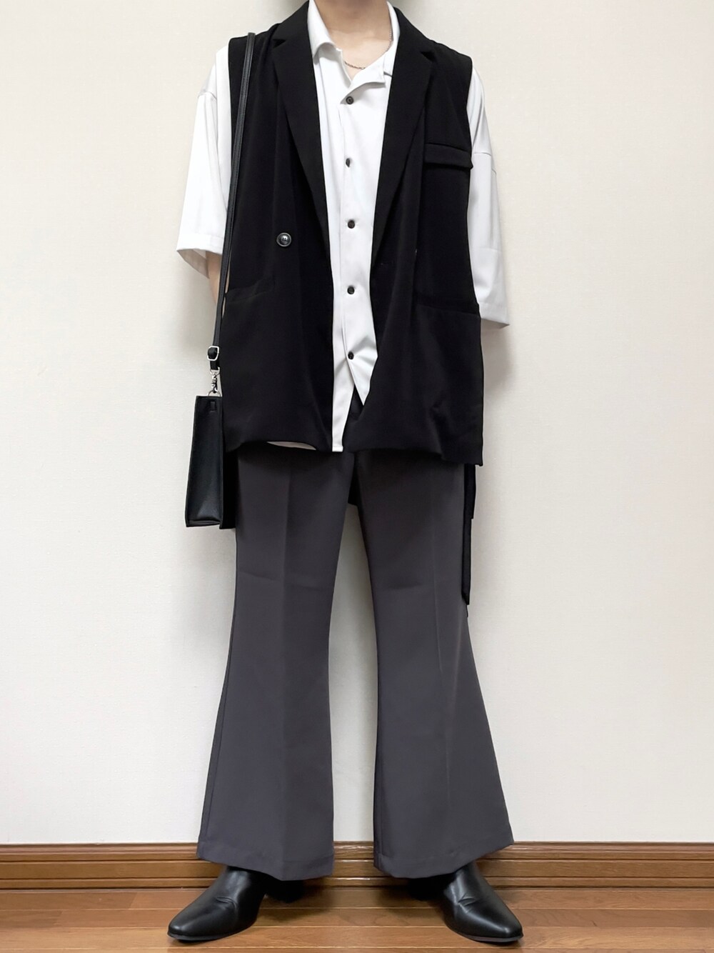 ご覧頂きありがとうございます! よろしければいいね、save、フォローお願いします! 今回はオトナなモードコーデです! フレアパンツとテーラードベストの相性良すぎて...😍 フレアパンツは一気に雰囲気出るから超おすすめです👍