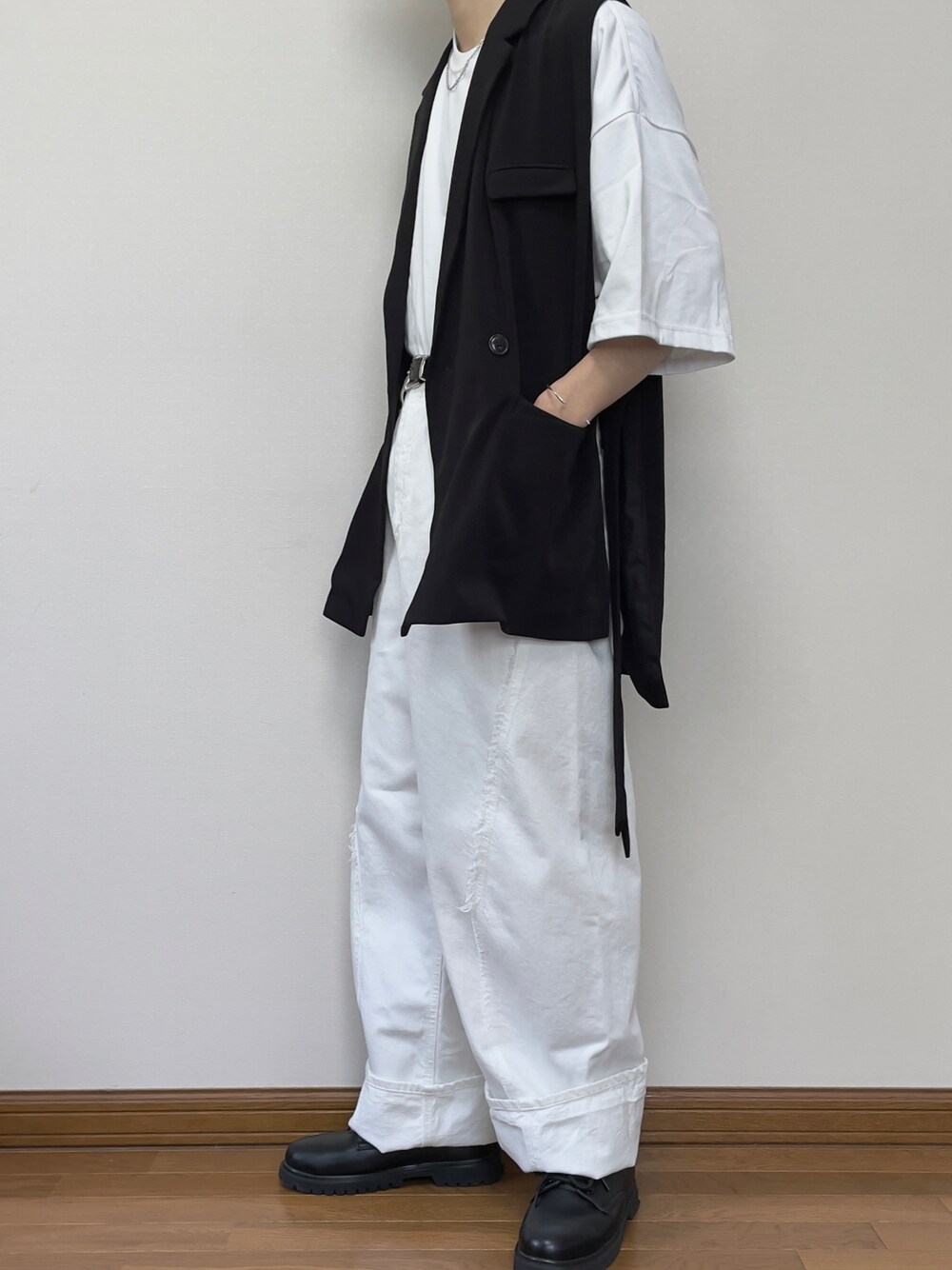 ご覧頂きありがとうございます! よろしければいいね、save、フォローお願いします! 今回はカジュアルコーデをキレイめな革靴とテーラードベストで引き締めたコーデです! テーラードベストをキレイめ以外に使っても案外映えることがわかったので、今後もどんどん使っていきます🔥