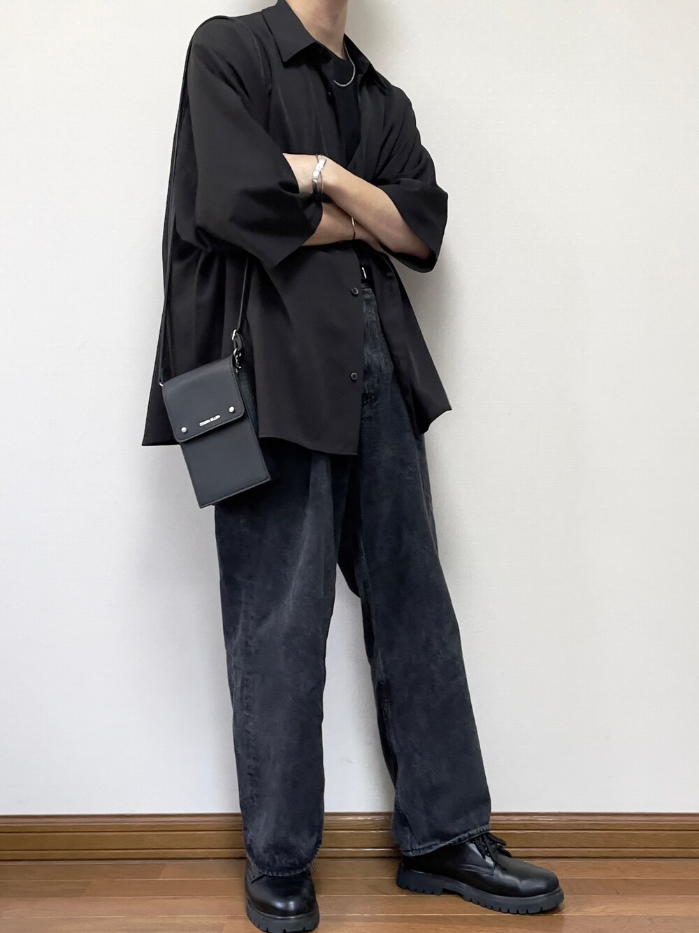 ご覧頂きありがとうございます! よろしければいいね&フォローお願いします! またまた投稿遅れちゃってすいません💦 復帰一発目はキレイめカジュアルなオールブラックコーデです! このデニム、シルエット最高なんですよ😍 色味も最高ですな👍