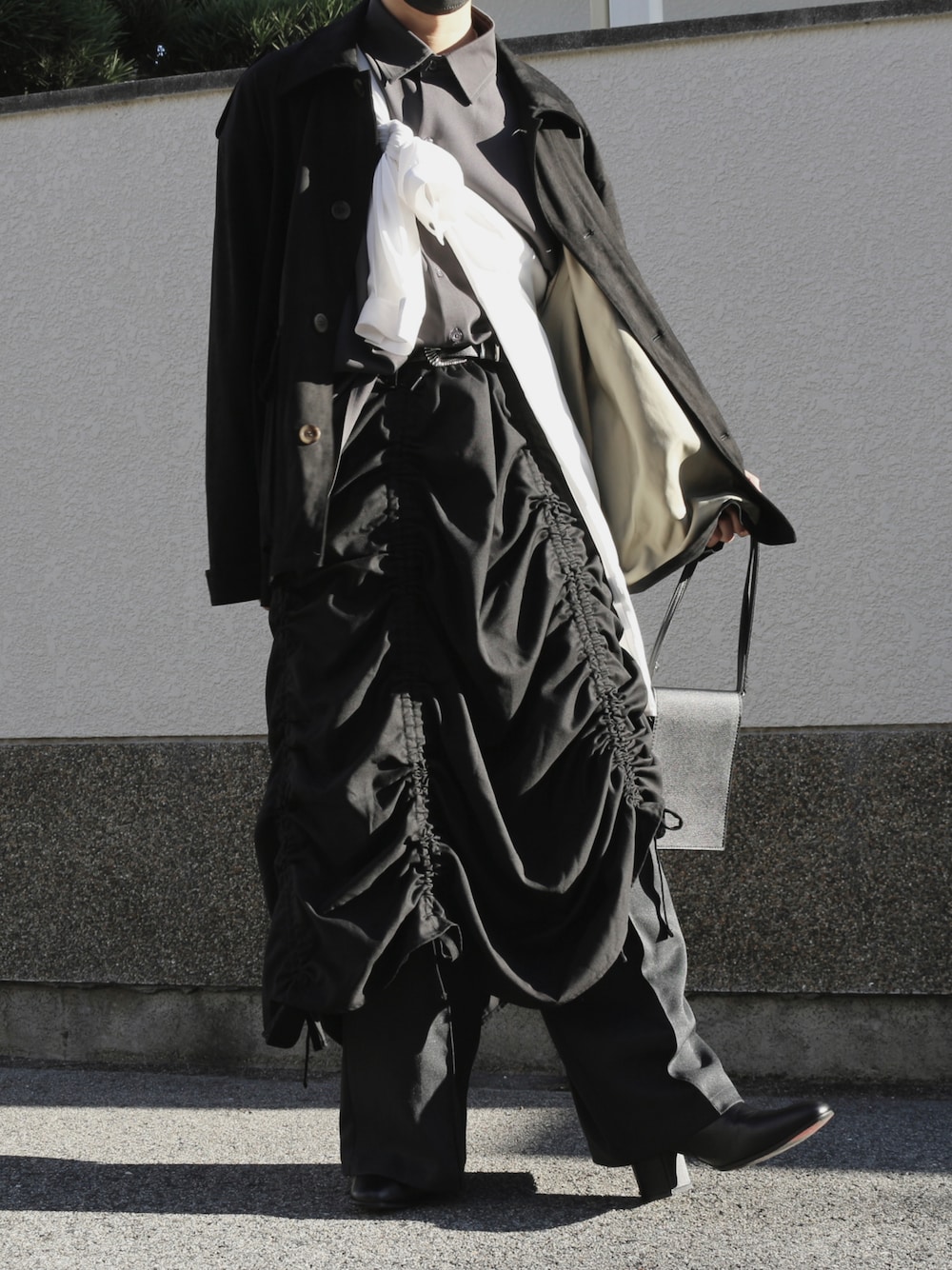 【今回のコーデ】 個性派たすき掛けコーデ たすき掛けしてアウターを着るという、結構斬新なコーデです! あとボトムスでスカートのレイヤードも入れて結構拘ってます👍