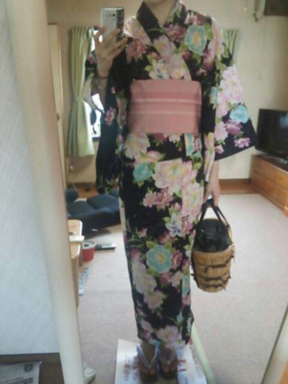 2014.09.06 諏訪湖新作花火大会で着ました。 浴衣 AEON 帯 きもの町 下駄 きもの町 バッグ Smantha Vega
