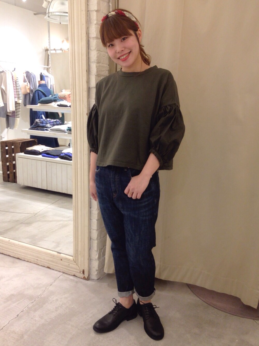 大人気のオイルカット布帛コンビプルオーバーを使ったスタイリングです! お店で取り扱いがあるのでぜひチェックしてみてください。