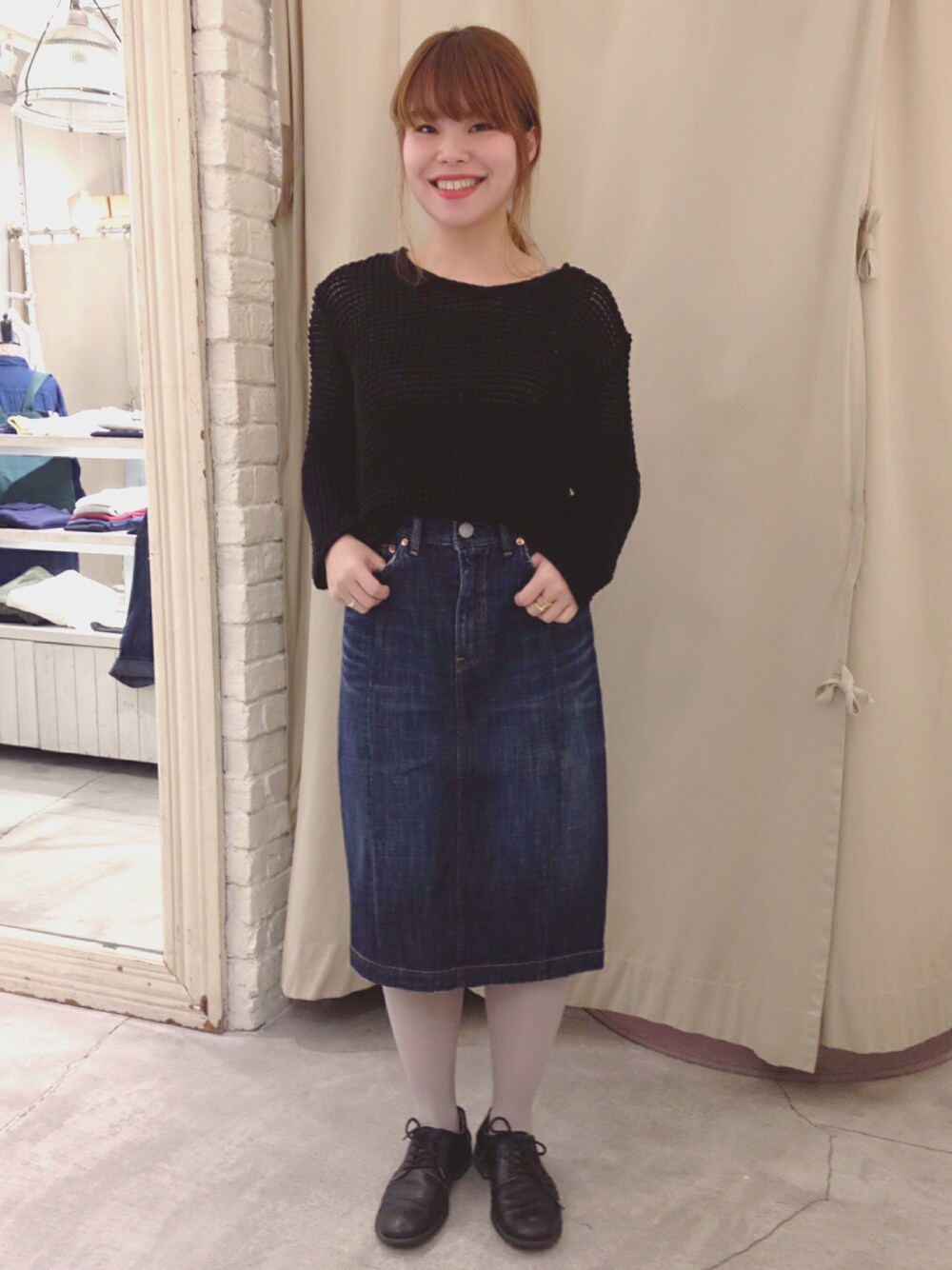 大人っぽいコクーンシルエットのスカートを使ったコーディネートです。 身体にはりつくシルエットではないので、スカートが苦手な方でもチャレンジして頂けます!