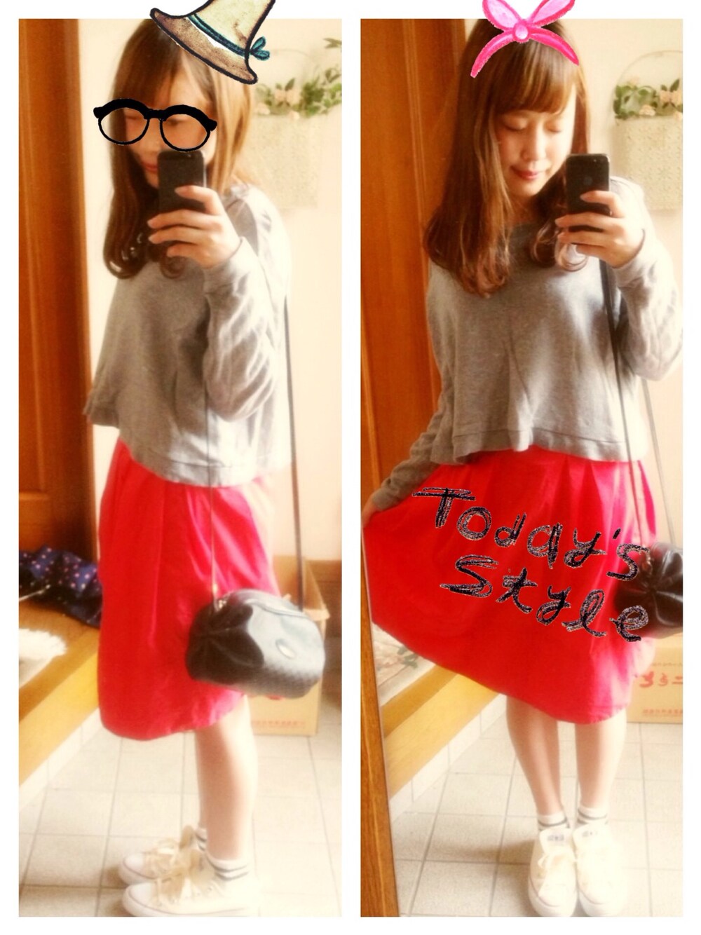 まっかな膝丈すかーーと♩ グレースエット/forever21 すかーと/ciaopanic スニーカー/コンバース バッグ/GUCCI