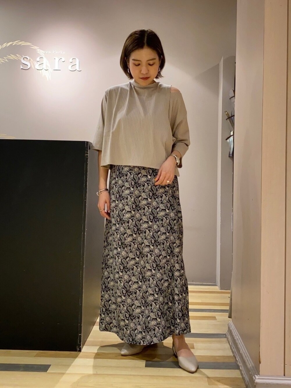 お洒落女子コーデ カラーも、デザインも、 上下文句なしのお洒落感!!! トップスは、重ね着風になったデザイン。 今回は、ウェストインして 丈が短い部分だけ出してコーディネート。 ウェストインが苦手な方でも ウェスト部分までしっかり カバー出来るので 安心してチャレンジ出来ます◎ ボトムスは、今季大注目のペイズリー柄。 シンプルなトップスと合わせても、 即お洒落に見えるので、 外せないアイテムです💓💓💓