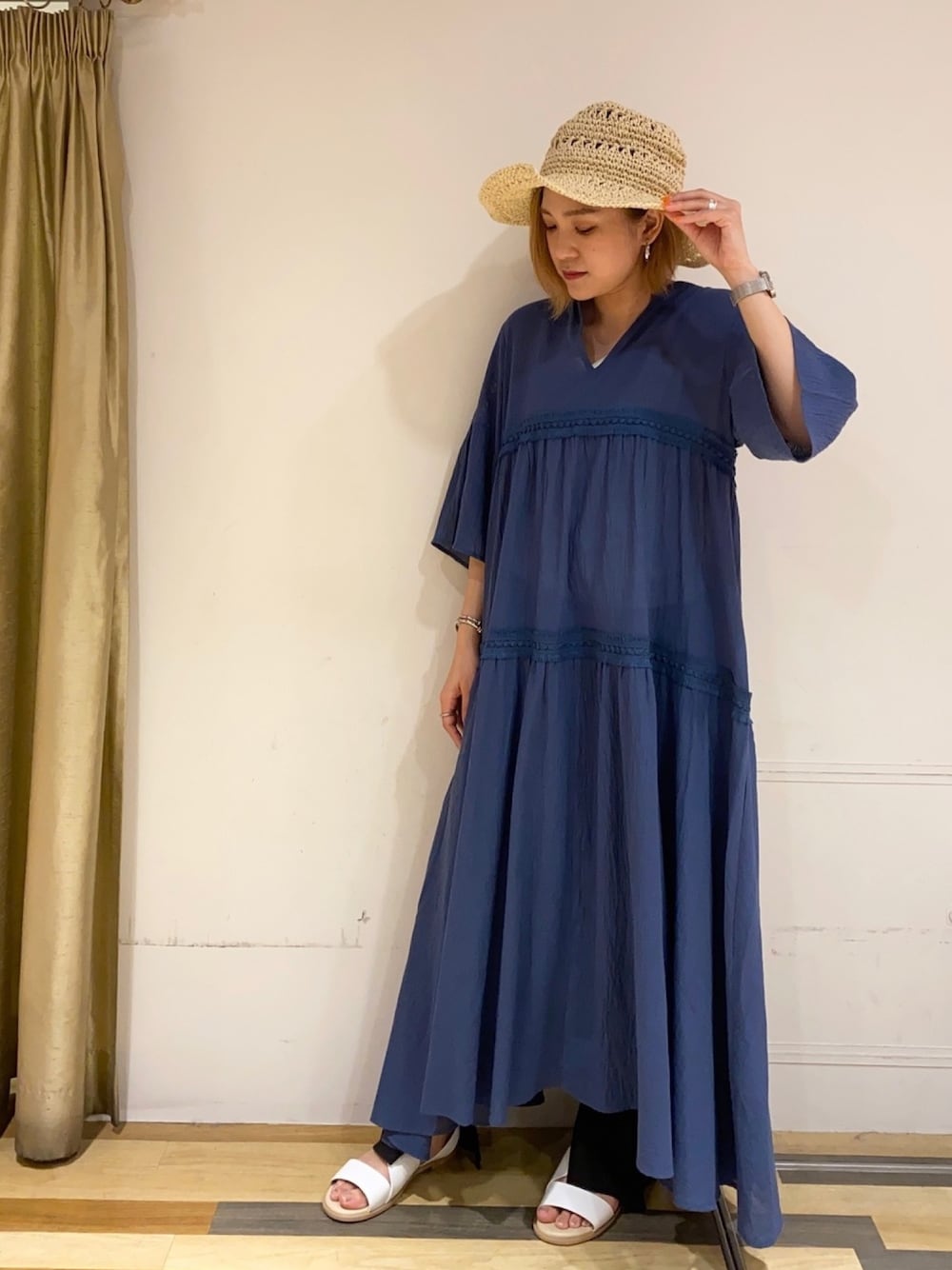バカンス気分コーデ🌴 なかなか遠出出来ない時期なので、 お洋服だけでも旅行気分に✈️ フリンジデザインと、 楊柳素材で夏らしい雰囲気たっぷりの ワンピースです。 ゆるっとした着心地で、 お出かけはもちろん、 おうち時間でも活躍します👍💯