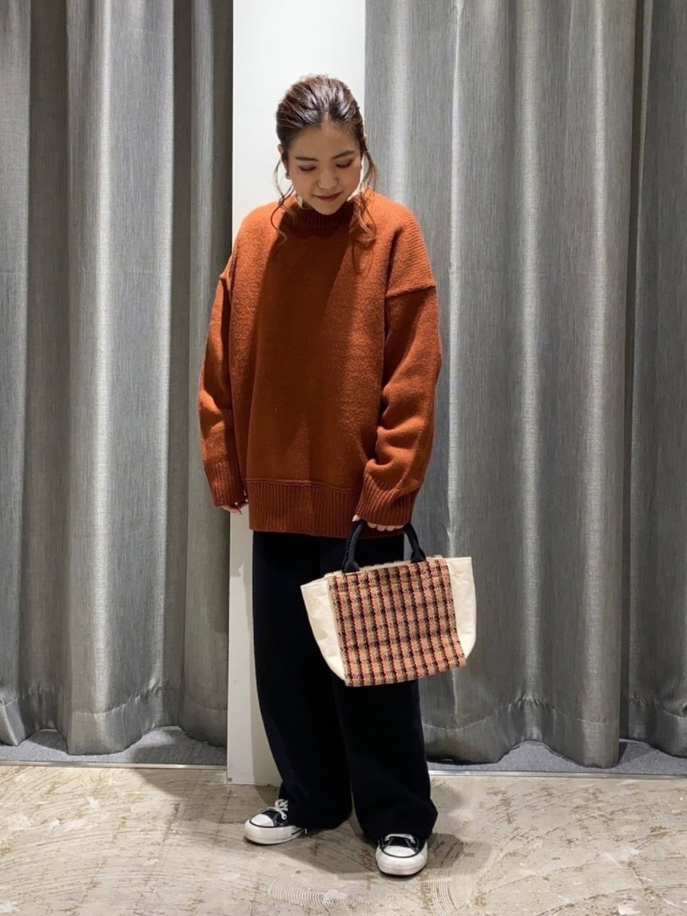 楽ちんコーデ *ニット ゆるっとしたサイズ感が可愛いニット。 ウールが入っているので、 デザイン性だけでなく機能面も◎ スキニーだけでなく、 プリーツスカートと合わせても 今年らしいコーデになります。 *パンツ ゆるっとしたシルエットで、 着心地楽ちんなパンツ。 ウェストもゴムなので締め付け感0! 表面のぽこぽことした素材が さりげなくお洒落にみせてくれます♪ カジュアルコーデにピッタリです◎