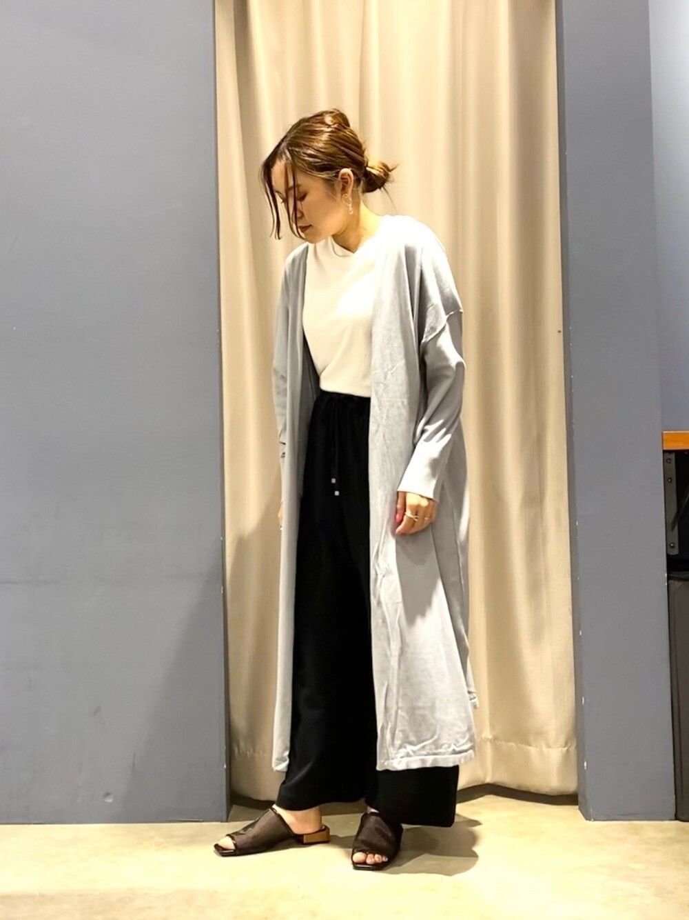 ゆいのカーディガン/ボレロ「ハイゲージニュアンスロングカーディガン」を使ったコーディネート