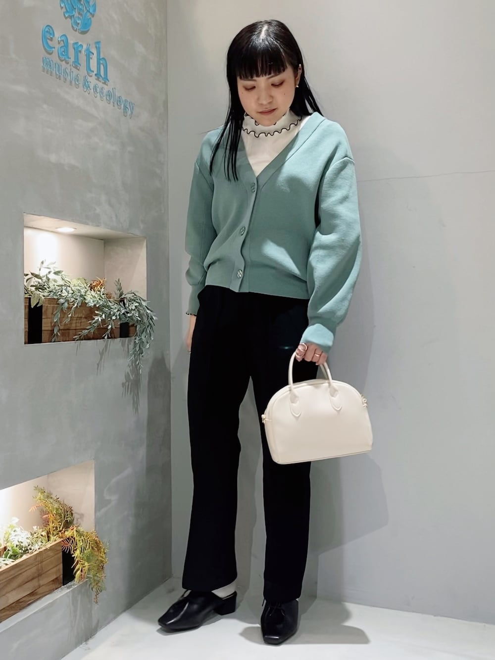 春カラーコーデ *カーディガン 綺麗めからカジュアルまで 色々使えるカーディガン。 ハイネックと合わせると、 今年らしいトレンドコーデになります。 *ボトムス ストレッチ性のある、きれいめボトムス。 センターライン&フレアシルエットで 美脚に見える優秀アイテムです!!