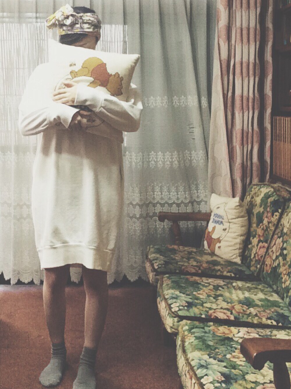 部屋着です。 先日USJでゾンビに襲われて膝を擦りむきました。この歳で膝小僧に擦り傷が恥ずかしいです。でも足出します。 毎日毎日眠たいです🐰