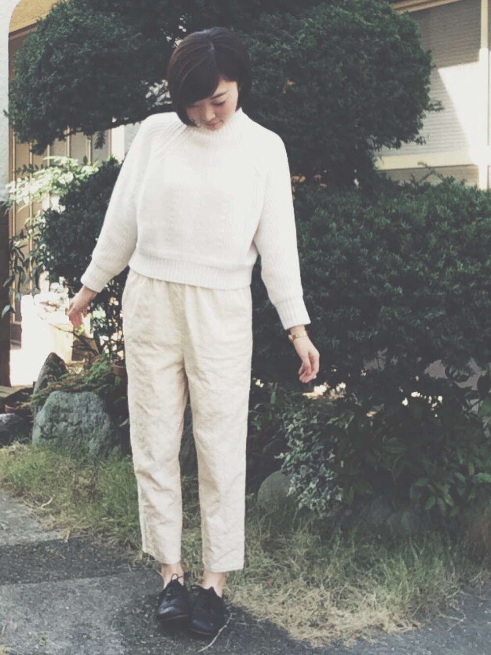 Nanacoのニット/セーター「C/Ac×Amossa ナナメ片畦 ドルマンチビPO」を使ったコーディネート
