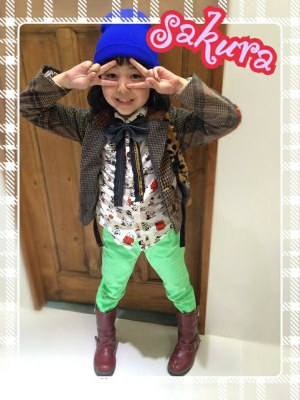 model★sakura シックなジャケットに、スヌーピーのキュートなシャツと蛍光グリーンのスキニーパンツでカジュアルダウン♪