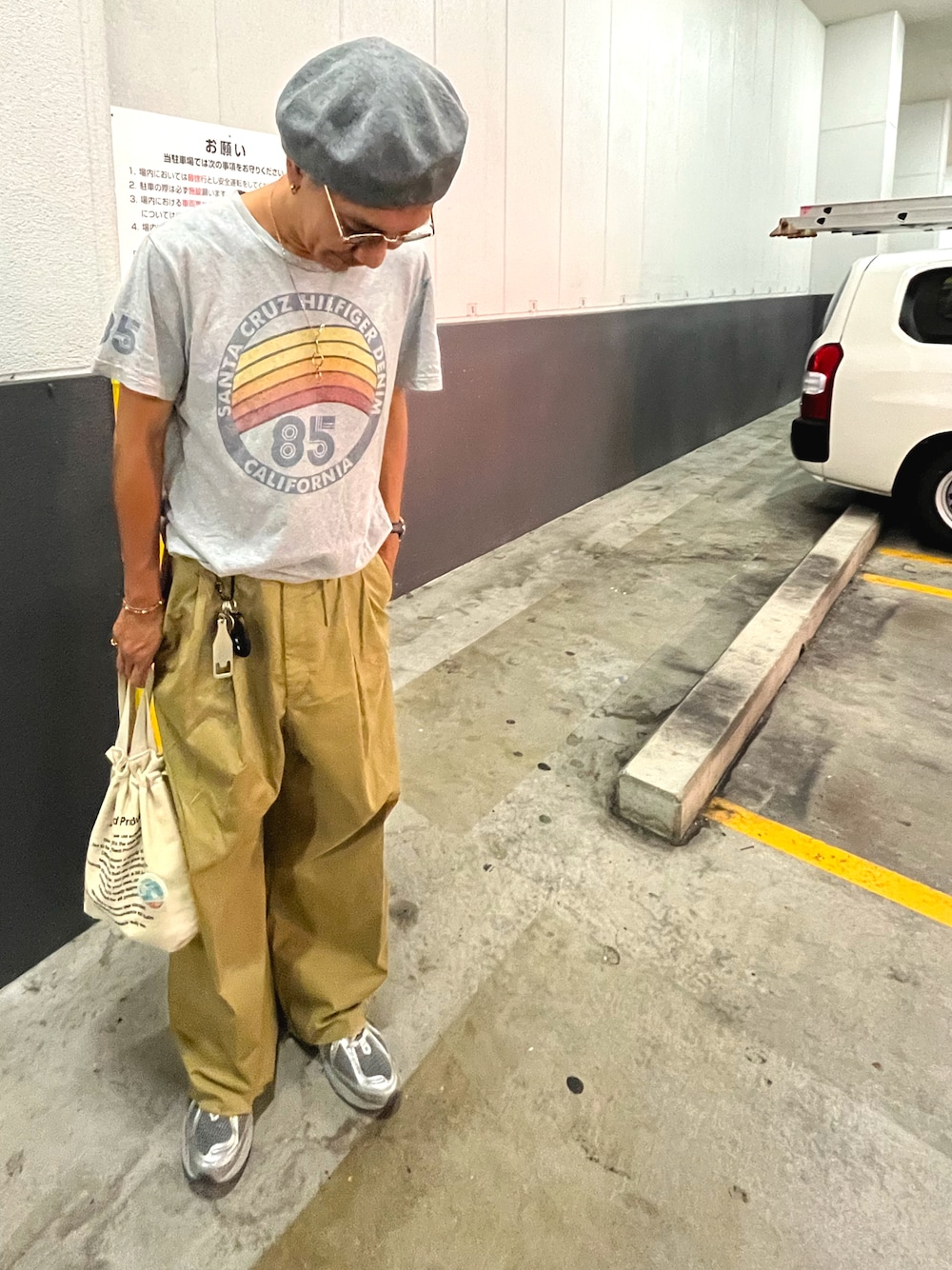 ZARAのワイドチノに古着のTシャツでシルバーとグレーでまとめてみました。