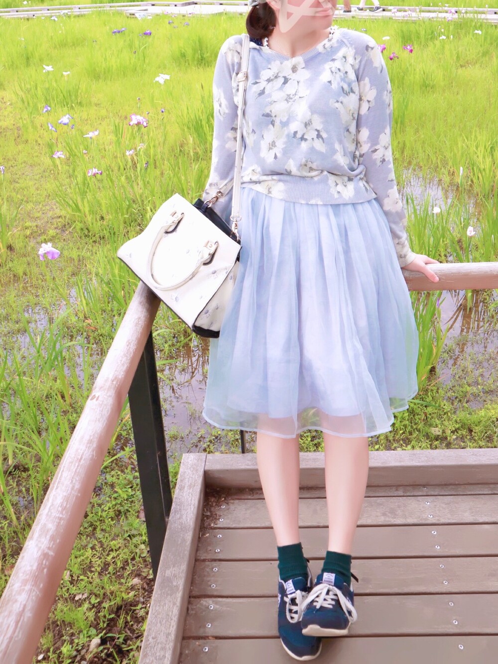 紫陽花を見に昭和記念公園へ* アイスブルーと淡い花柄で、テーマは6月の梅雨の前* サックスブルーの淡い色合いもだいすきです。 腰掛けたら腰回りぼやっとしちゃった。 だいえっと、がんばります...