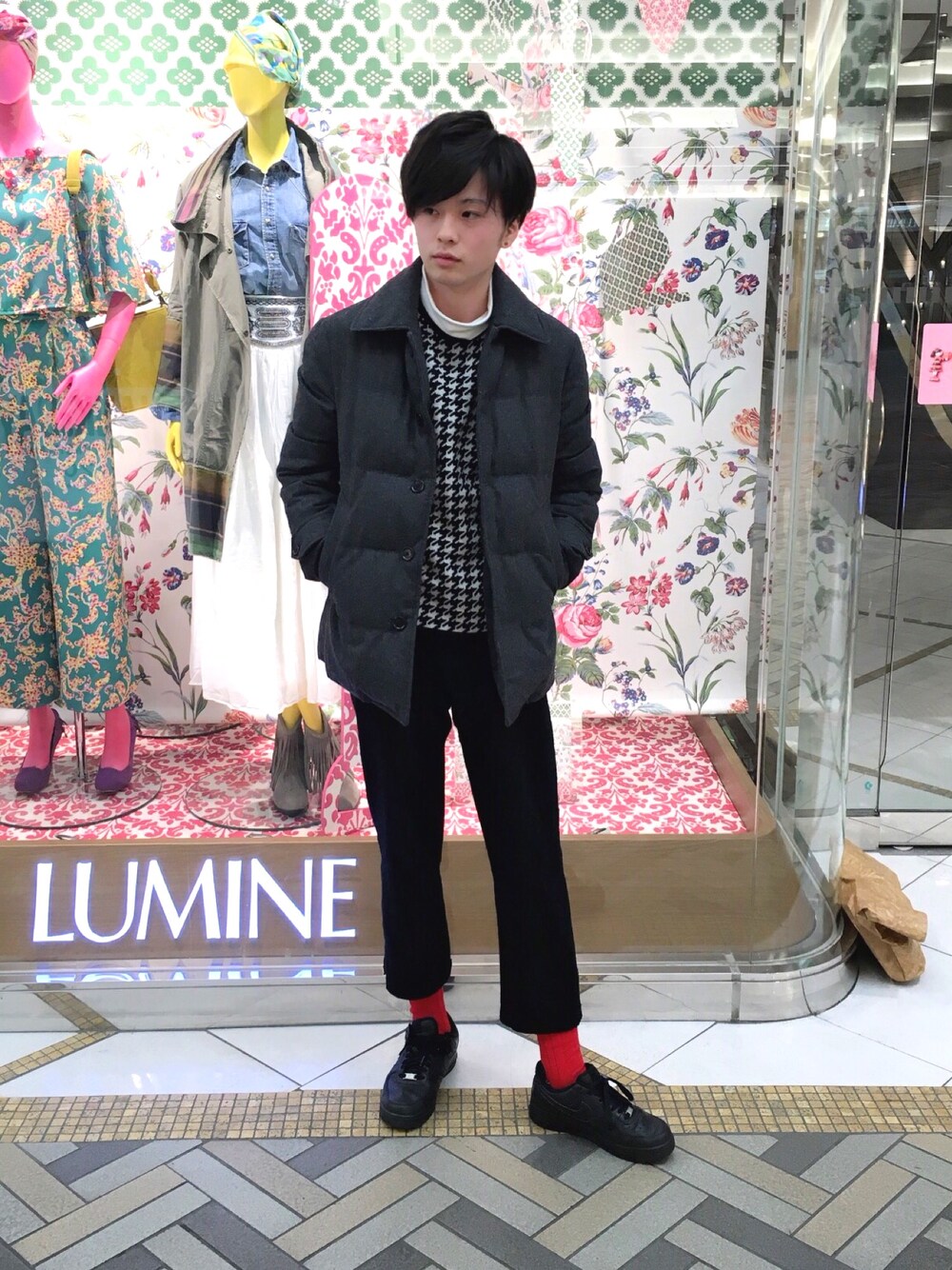 この日はスポッチャに行っていたので動きやすいナイキのエアフォースワンです! 靴下にさし色で赤を選びました!