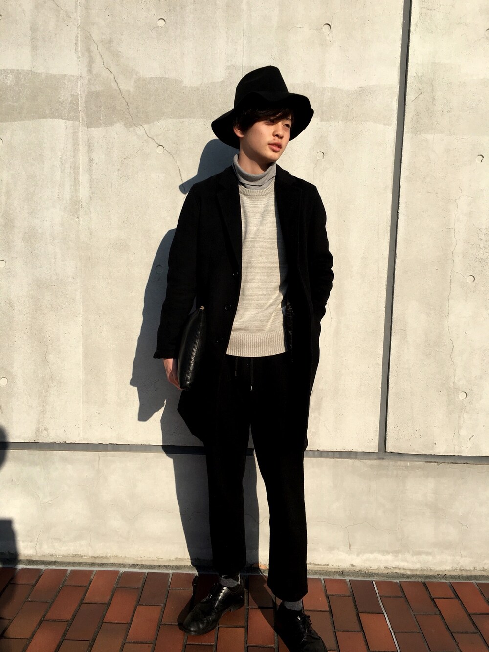 黒とグレーのシンプルコーデです。クルーネックとニットの色を統一することで、黒が目立っていい印象です! または全身オールグレーで統一すれば絶対にかっこいいです!