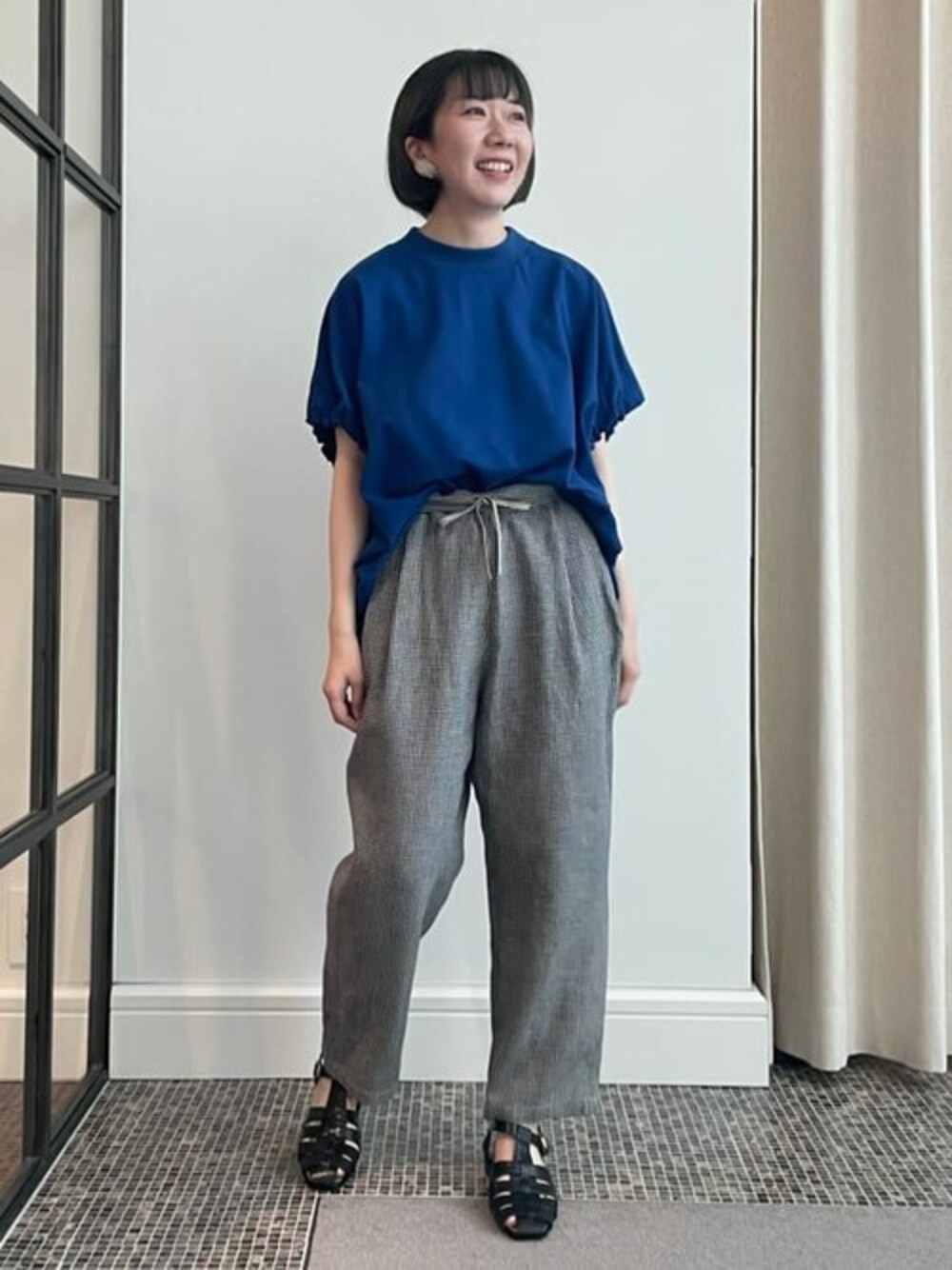 夏の爽やか、カジュアルコーデ♪ さらっと涼しいカノコ素材のブラウスは、ロイヤルブルーをチョイス。 パンツはウエストを折り返してリボンをポイントに。 着こなしも楽しめる定番アイテム達です!