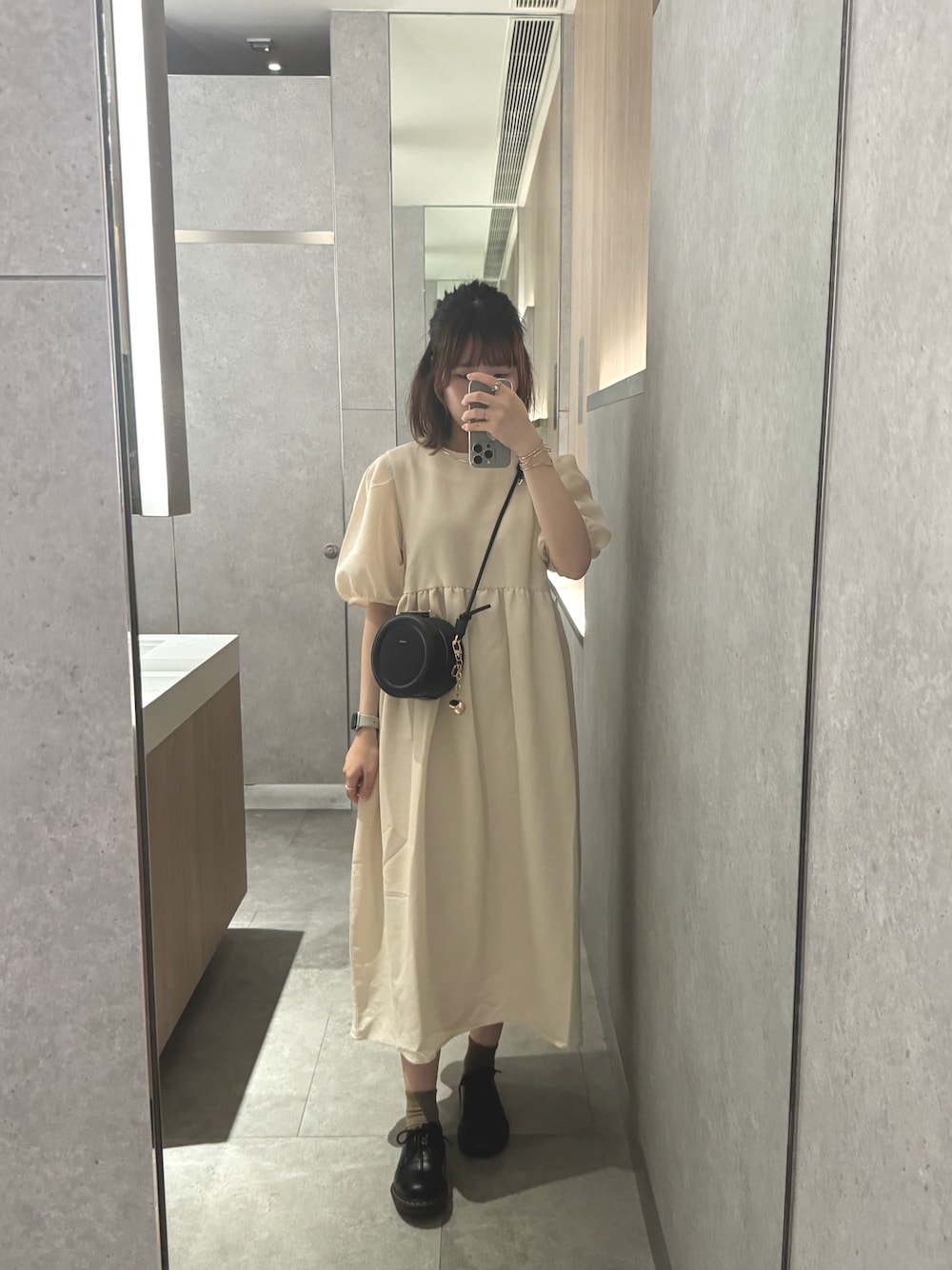こにのワンピース「ハイウエスト切替えパフワンピース」を使ったコーディネート