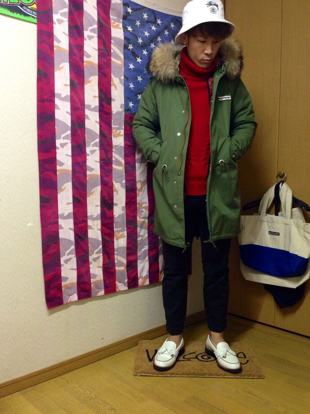 さっきとはアウターが違うver. 12A/Wのモッズコートです! 両袖裏がレオパード柄になっています!