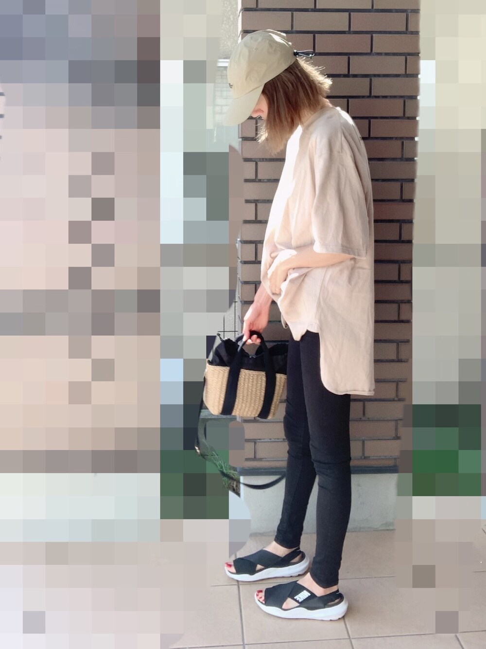 cononaのTシャツ/カットソー「バックプリント空紡糸クルーネック無地ロング丈ビッグTシャツ(半端袖)」を使ったコーディネート