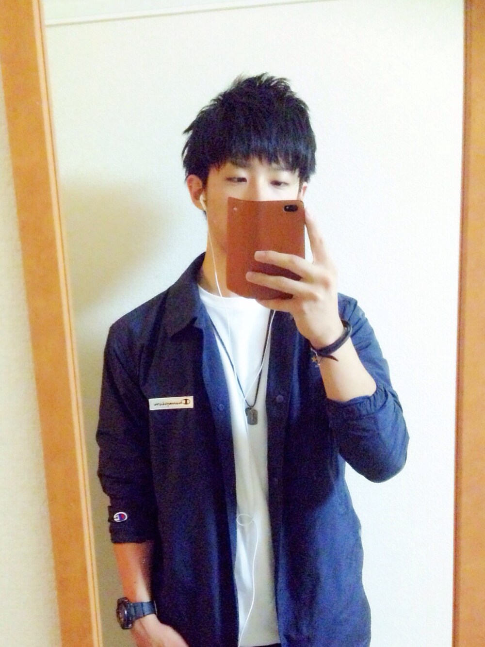 ブルー系のトップス、ホワイト系のTシャツ/カットソーを着用したメンズの冬コーディネートの1枚目の写真