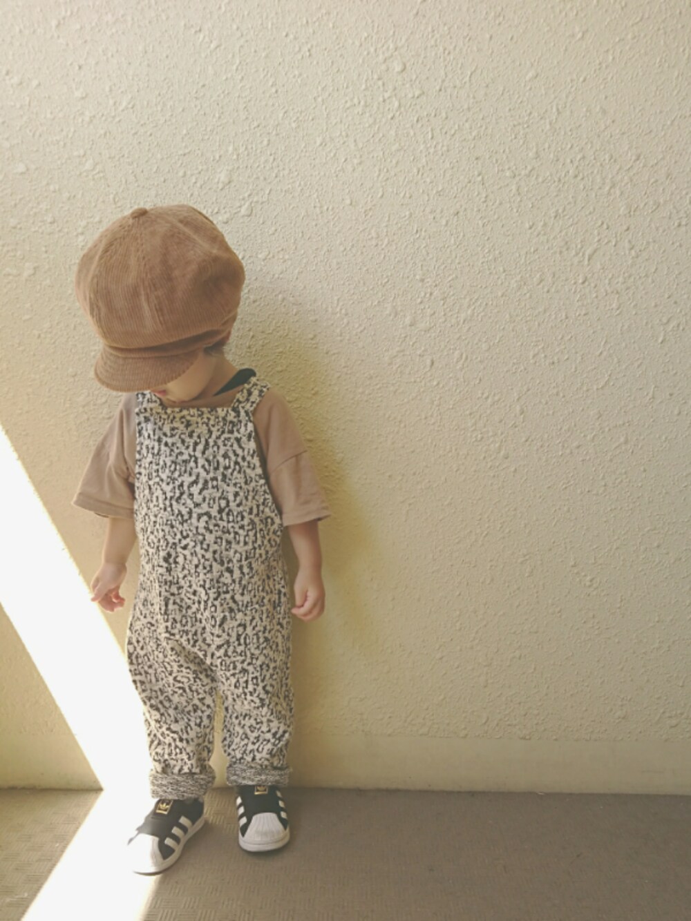 本日のコーデ👕 お目目チカチカのサロペットboy👦👒w 半袖だけど…#秋準備はじめました ◎後じわでgetしたコーデュロイのキャスケット。深めの丸いシルエットが可愛い😚❤スリコのと迷っていたのですが、こちらを見て、このコロンとしたフォルムにトキメキ…😌☝✨←そして、この被られた感…堪らんね👌w ◎冒険柄w(=レオパード柄)のサロペットは、前に一度見て、息子にはちょっとなぁ~とやめたもの😁しばらくwareの女性コーデを見ていたら(レオパコーデに目がいって✨)、また沸々と購買欲が湧き出し…購入してしまったーー😔☝☝w。 控えめレオパ➕ホワイトメインで、秋冬コーデに使えそう❤❤しかし、いつもチョイスしない柄 に…そわそわ😁💨まだイマイチしっくりこない母😆💦w 今日は、あとで息子のバースデーケーキ🎂の予約をしに❤❤去年はひと口程度で、あとはパパ&ママの胃袋行きだったね😁💨今年は、息子の大好きなチーズケーキにデコレーションしてもらおう😌🎉✨