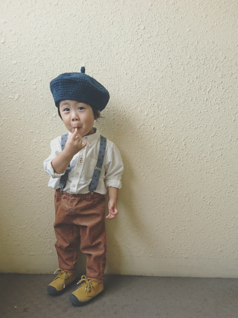 本日のコーデ👕 息子さん、今日で2歳になりました👦🎉✨✨ 小窓picは、そんな彼のいつもより躍動感溢れるshot📷 よ~!さすが2歳💃💃w ←誕生日の今日は、白シャツ✖サスで…ちょっと洒落こんだ僕ちゃんコーデ💃🎊 ハンドメイドのベレー帽で #秋準備はじめました ◎オーダーしていたベレー帽がやっと届いたので早速😌💕ツイード入りのネイビーカラーにしたのですが、うんいい感じ😚持っていなかったお色なのですが、こーでも締まるし、やっぱり使えるお色だわ~🙆🙆✨ハンドメイドの毛糸編みは、優しい感じになりますね😊 ◎おZARAさんのサスペンダーは、★柄に一目惚れ😌太めのサスも★の総柄なのでおチビにも🙆❤柄のサス可愛いーー。白シャツだと結構大人っぽくなるので外しで投入💃💃✨ 暴れもんの僕も、今日で2歳に🎂ほんと、早いこと😲😲💨きっとあっという間に成長していくんだろーな…と。朝から少し感慨にふける母😁💨w 2歳おめでとう🎁✨ 2歳になった僕は、じゃがりこを1本だけ貰えてCMばりにすすり食い😆w