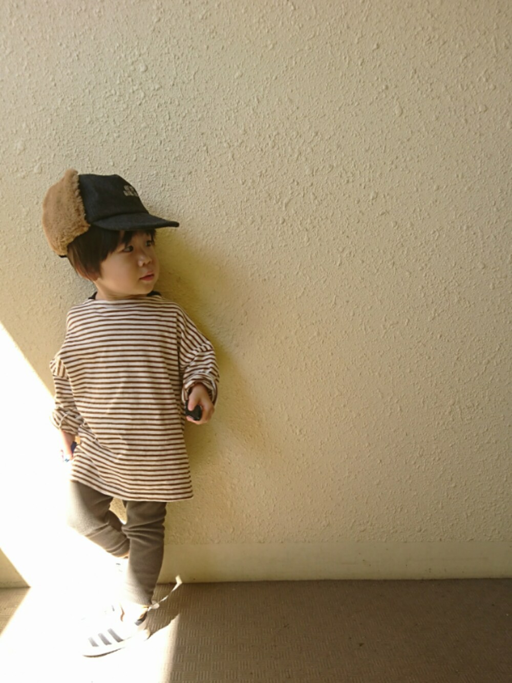 本日のコーデ👕 ダボTとレギンスで楽チンラフ~style👦👣 ◎パイロットキャップは、去年買わずに終わってしまって…今年はリベンジget😚👍浅めなので、ちょこんと頭に乗る感じがまた可愛いーー❤←hinata君と色違い✨グレーにしたよ~ サイズが心配だったので、店舗に試着へ🏬💕キャメルも可愛くて、なかなか決められず、さいごは息子に任せる母😁💨←これ結構やる w いつも無地コーデが多いのでこの色もアクセントに良さそう❤グレー✖ベージュの配色も可愛い❤💕 ◎帽子のファーの色味に合わせて、ブラウンボーダーのお気に入りちゃんを😚✨ キャップメインのコーデも、控えめに引き立ててくれるエルボーパッチよ可愛いヤツ❤😊👌w ◎去年もお世話になったカーキのリブレギンスは、UNIQLOさんのもの。やっぱりリブ80㎝は丈が短い😲ま、ソックスちら見せがしやすいので…ことしも履きましょう😄👍w 今日は、朝から小児歯科へ💨昨日から時々歯を指して、「口いたいよ~」と言うので心配になり…😫💦何もなければいいなぁ💨 そして今月は病院の行き過ぎにより…ピンク用紙がもう1枚😱ついでに貰いにいかないとーー💃