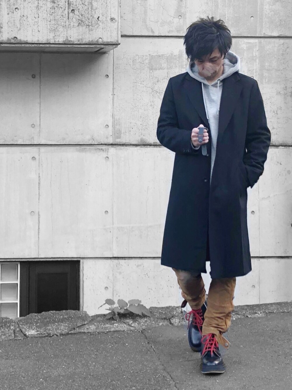 TOPS:Iroquois PANTS:mnml FOOT: ジャンバティスタ・ヴァリ×H&M チェスターコート✖️パーカー 無難な感じ