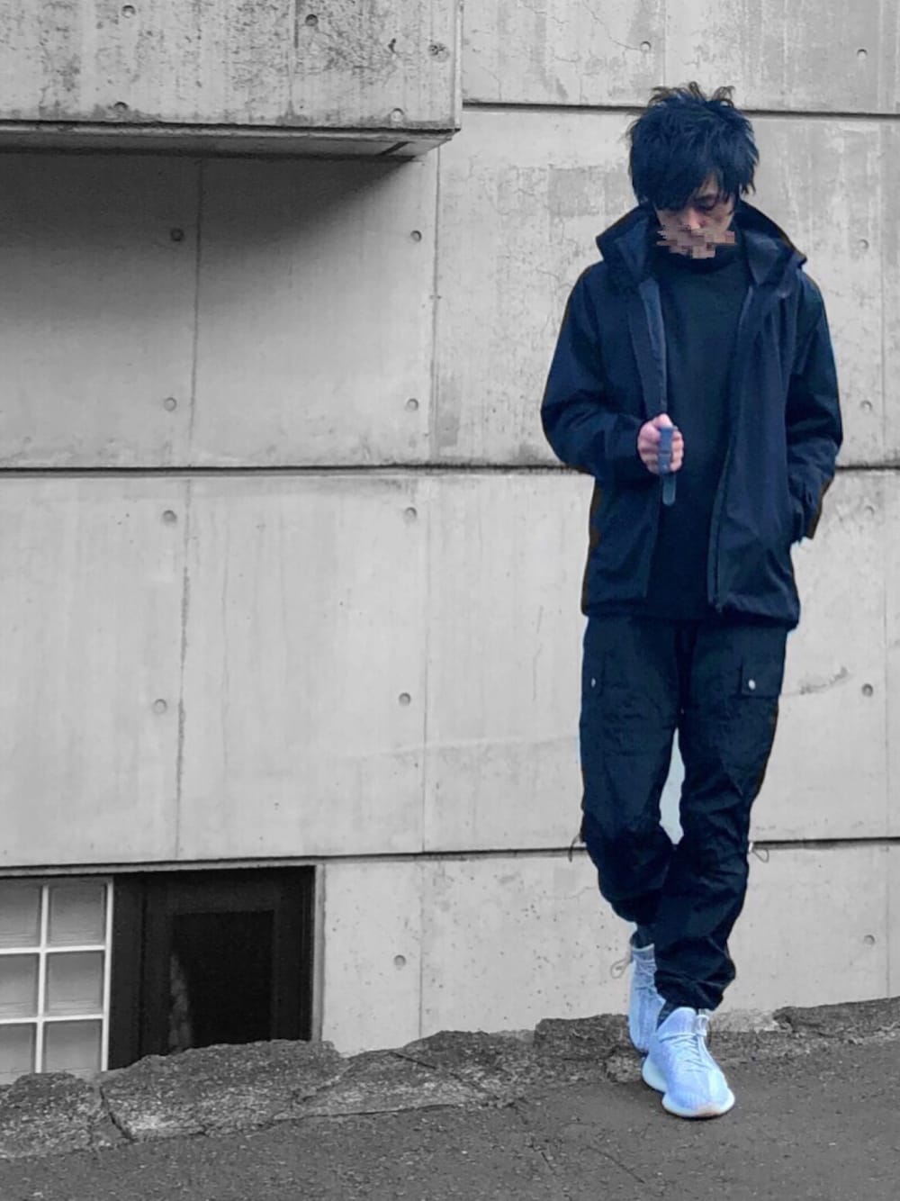 TOPS:adidas PANTS:mnml FOOT:yeezy boost 350 ブラックコーデ