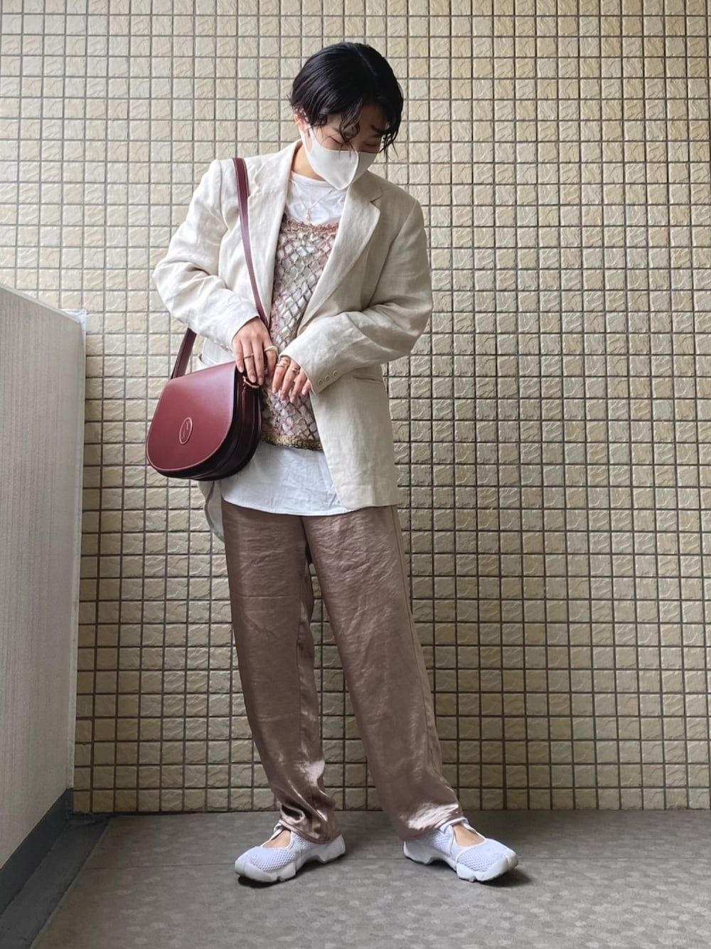 maのその他パンツ「【WEB/一部店舗限定】ヴィンテージサテンパンツ」を使ったコーディネート