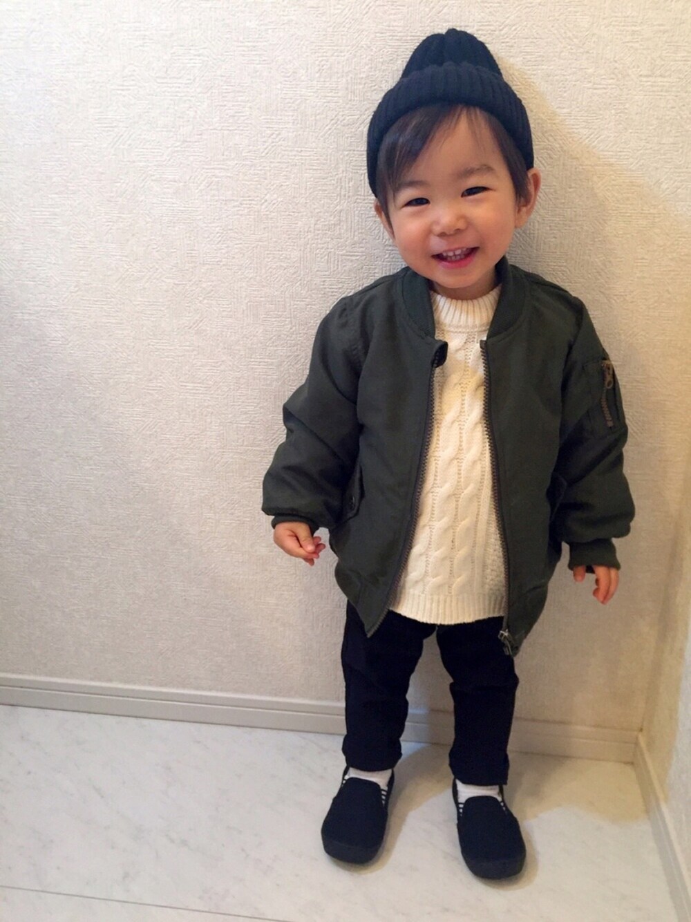 ついにカーキのMA1を手に入れた👏🏻 結局、西松屋だけど⭐️ 春先にも着れそうで重宝しそう💓 カーキのMA1きて、ママが1番すきな きれい目カジュアル💗 本当はこれにハット被らせたら、 どストライクだけどもってないから ニット帽で🙌🏻💫💫笑
