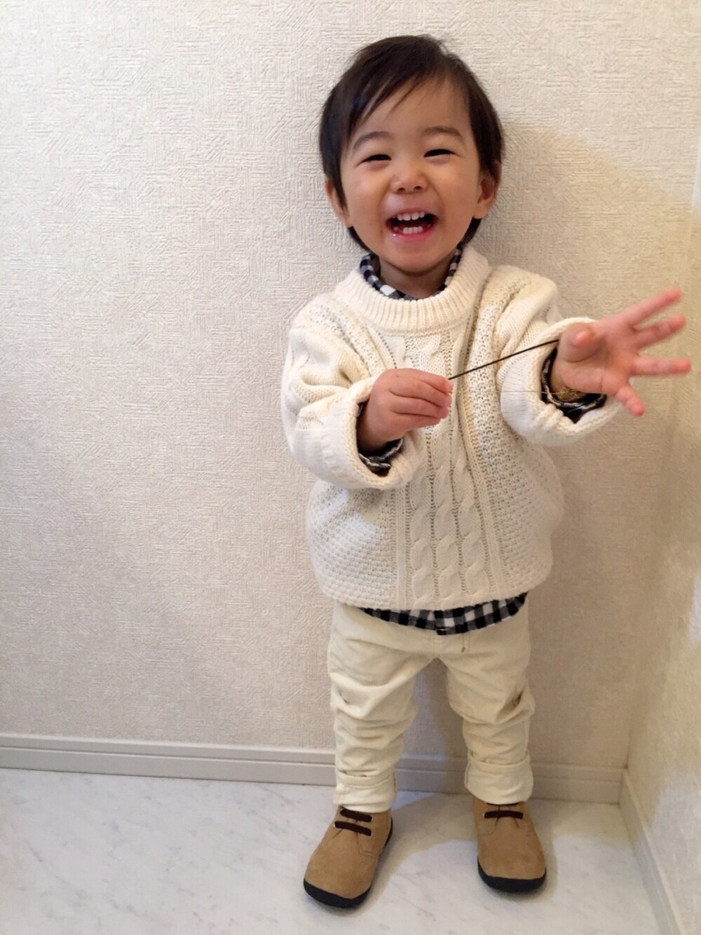 カジュアルにもきれい目にも使えるこのブーツ💖 買って正解👏🏻💕💕 今日は支援センターの予定だったから、 普段できないオールホワイト🤗⭐️✨